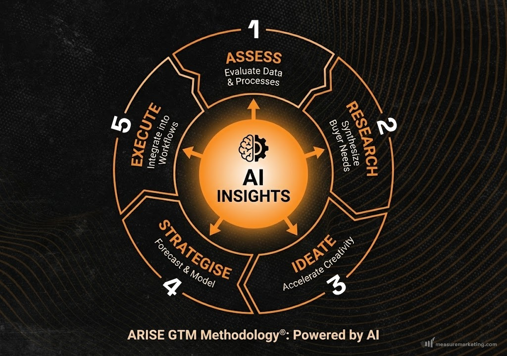 To help organizations adopt AI in a structured, sustainable way, MMR uses the ARISE GTM Methodology®, a practical five-stage framework: